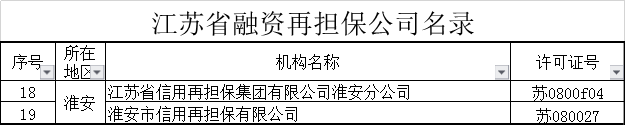 《江蘇省融資擔(dān)保公司名錄》、《江蘇省再融資擔(dān)保公司名錄》公布