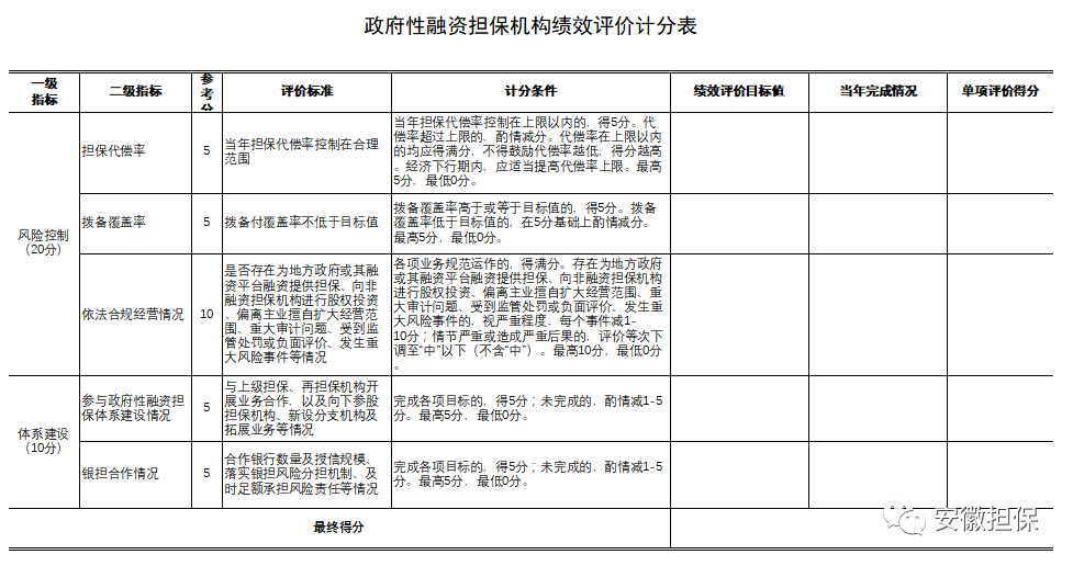 附:1. 政府性融資擔(dān)保機(jī)構(gòu)績效評(píng)價(jià)計(jì)分表
