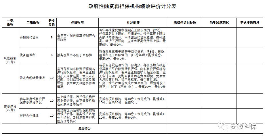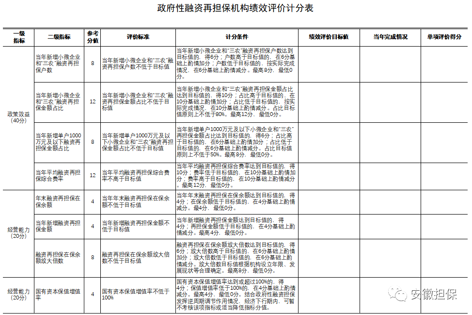 2. 政府性融資再擔(dān)保機(jī)構(gòu)績效評(píng)價(jià)計(jì)分表